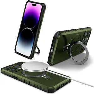 Compatible with iPhone 15 Case [Compatible with Mag-Safe][Adjustable Kickstand][Military Grade Drop Protection] Translucent Phone Case for iPhone 15 Translucent