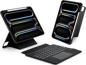 DUX DUCIS iPad Pro 11 Keyboard Case (2024), Magnetic Folio Cover with Multi-Touch Trackpad, 7-Color Backlit, Pencil Holder, Wireless & Detachable - Black