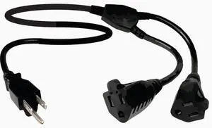 NEMA 5-15 AC Splitter Y  Power Cords, Black, 14 awg - 3 feet, UL Listed