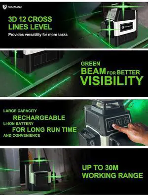 Pracmanu Mini Laser Level 12 Lines 3D level Self-Leveling 36