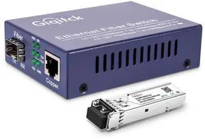 Gigabit Ethernet Media Converter, 10/100/1000Mbps Networks Ethernet to Fiber Media Converter, with 1pcs 1000Base-SX SFP Module (1.25Gb/s, Multimode, Dual LC, 850nm, 550m)