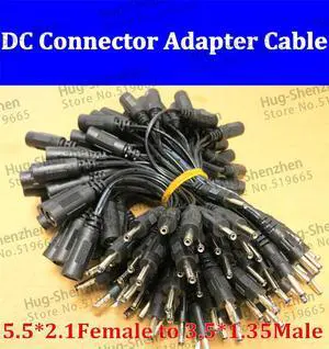 50pcs/lot 15cm DC connector adapter cable with 5.5*2.1 female connector to 3.5*1.35 Male connector