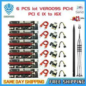 6pcs/lot VER009S PCI-E PCI E 1x to 16x Mining Machine Enhanced Extender PCIE Riser Card Adapter 60cm Power Cable for Bitcoin BTC