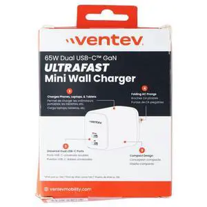 Ventev 65W Dual USB-C GaN Ultrafast Mini Wall Charger - White