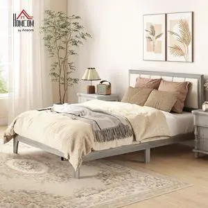 HOMCOM Full Size Bed Frame with Upholstered Headboard, Platform Bed Frame with Wooden Slats, No Box Spring Needed, Easy Assembly, Gray