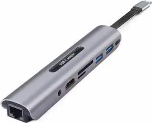 WISDUM Docking Station Card USB-C 3.0 HUB Type to VGA RJ45 PD Reader Compatible with MacBook Pro USB 4K Splitter (V163B 8in1)
