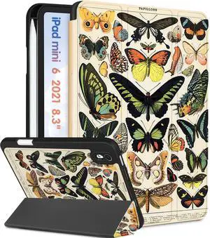 Wazzasoft for iPad Mini 7 Case - for iPad Mini 6th/7th Generation Cases Women Girls Cute Folio Cover Girly Butterfly Design Unique Pencil Holder for Apple Mini 6 2021/Mini 7 A17 Pro 2024 Case 8.3 Inch