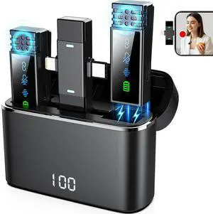 GARUTED 2 Pack Wireless Lavalier Microphone for iPhone iPad Android, Active Noise Reduction Mini Mic with Charging Case 7H Clip On Microphones for Interview, Recording, Vlogging, Live Streaming, 80ft