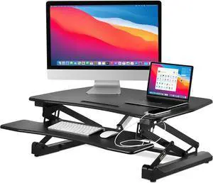 Mount-It! Electric Standing Desk Converter 35.4" Quick Sit Stand Desk Riser, Computer Workstation Motorized Easy Convertor with Built-in USB Charging Port, Ergonomic Height Adjustable in Black