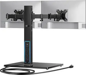 HUANUO Dual Monitor Mount with Power Outlet, Computer Monitor Stand with Sturdy Glass Base, Full Motion Dual Monitor Stand with Adjustable Height, Supports 13-32 Displays up to 22 lbs, Easy Setup