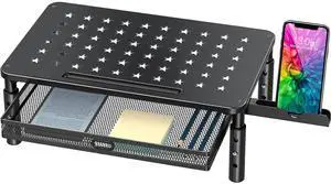 Features: Integrated PC workstation mobile cart with 4 wheels, 2 monitor mounts and several shelves, provides an ample work surface and functional storage, space saving and easy to move, perfect for home, office, factory or more^^Compact Design - 1 Pole with 2 monitor mounts, 3 platforms and 1 storage basket provide