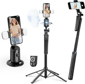 Auto Face Tracking Selfie Stick Tripod for iPhone with Light 360° Rotation That Follows Your Movement 63" Camera Tripod Stand with Remote for Content Creator Vlog Live Stream Video Recording