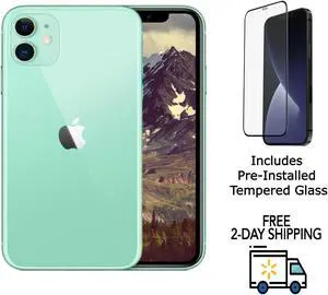 Refurbished Apple iPhone 11 A2111 (Fully Unlocked) 64GB Green (Grade B) w/ Pre-Installed Tempered Glass
