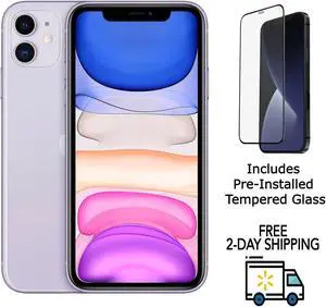Apple iPhone 11 A2111 (Fully Unlocked) 64GB Purple (Grade A+) w/ Pre-Installed Tempered Glass