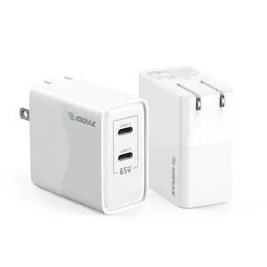 Esoulk Premium 65W GaN 2-Port Dual USB-C Wall Charger Adapter for iPhone 17 Pro Max, Macbook, iPad, iPhone, Samsung Smartphones