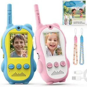 Walkie Talkies for Kids, Video Walkie Talkies 2 Pack with Screen Display, Rechargeable Toy Radios for Ages 3-12, Voice Changer & Real-Time Video Chat, Long Range, Gifts for Boys Girls (Blue & Pink)