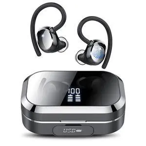 JAYSUING Bluetooth Headphones Wireless Earbuds 120hrs Playtime Wireless Charging Case Digital Display, Ear Buds with Earhook,IPX7 Waterproof, Deep Bass 2.0,Over-Ear Earphones for Sport Running
