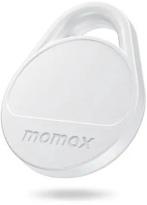 Momax Key Finder Tracker Tag Smart Rechargeable Tracking Device with SOS Alert Mode & LED Strobe, Find My (iOS Only), IPX5 Waterproof, Global Search for Suitcases, Luggage, Bags, Backpacks, White