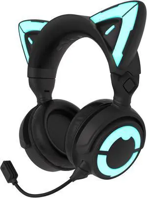 Gemdeck Wired Headphones Cute Cat Ear Bluetooth Foldable Headphones Gift Black