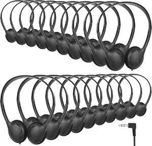 Headphones Bulk for Classroom School Students 20 Pack Class Set Headphones for School Students Teenagers Boys Girls 3.5mm Jack (Black)