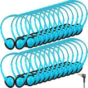 Konohan 30 Pack Headphones Bulk Headphone for School Classroom Student Wired Headphones Adjustable with 3.5 mm Jack for Adults (Sky Blue)