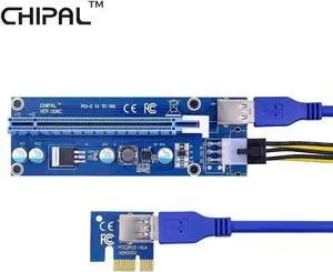 10PCS VER006C 0.6M PCIE PCI-E 1X to 16X Riser Card Extender with USB 3.0 Cable / 6Pin Power Cable for BTC LTC ETH Mining