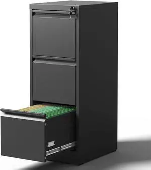 3 Drawer File Cabinet with Lock, Vertical Filing Cabinets for Home Office, Locking File Cabinet Hanging Files for A4/ Legal/Letter, Require Assembly, Black