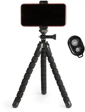 Portable and Flexible Tripod with Wireless Remote and Smartphone Clamp, 10-inch, Black