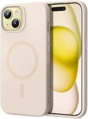 ESR for iPhone 15 Plus Case with MagSafe, Supports Magnetic Charging, Slim Liquid Silicone Case, Shock Absorbing, Screen and Camera Protection, Cloud Series, Light Tan