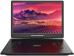 15.7" Portable DVD Player with 14.1" Large HD Screen, 6 Hrs Rechargeable Battery, FM Out, Sync TV, USB, SD Card and Multiple Disc Formats, Dual Speaker, Black