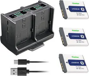 Kastar 3-Pack Battery and Quadruple Charger Compatible with Sony NP-BD1 NP-FD1 Battery, Sony D Type Battery, Sony BC-CSD BC-CS3 Charger