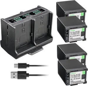Kastar 4-Pack Battery and Quadruple Charger Compatible with Canon VIXIA HF G60, HF G70, VIXIA GX10, XF400 XF405 XA10 XA11 XA15 XA20 XA25 XA30 XA35 XA40 XA45 XA50 XA55 XA60 XA65 XA70 XA75 Camera