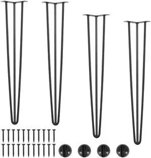 VEVOR Hairpin Table Legs 28", Set of 4 Desk Legs 900lbs Load Capacity, Hairpin Desk Legs 3 Rods for Desk Chairs Bench Dining End Table, Solid Carbon Steel Heavy Duty Furniture Legs Black