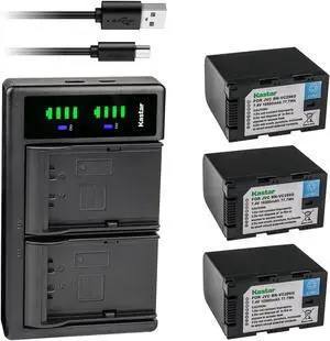 Kastar 3-Pack Battery and LTD2 USB Charger Compatible with JVC BN-VC264G BN-VC296G Battery, JVC AA-VC20 AA-VC20E AA-VC20U Battery Charger, JVC CONNECTED CAM GY-HC500E GY-HC500U Camcorder