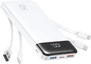 JAYSUING 20000mAh Portable Charger with Built in Cables, 22.5W Travel Power Bank Fast Charging, USB C Cell Phone Battery Pack for iPhone 16/15/14/13/12/11 Series, iPad, Samsung, Android, Tablet