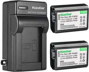 Kastar 2-Pack NP-FW50 Battery and AC Wall Charger Replacement for Sony NEX-C3, NEX-C5, NEX-F3, SLT-A33, SLT-A35, SLT-A37, SLT-A55, Cyber-shot DSC-RX10, Cyber-shot DSC-RX10 II, Cyber-shot DSC-RX10M2
