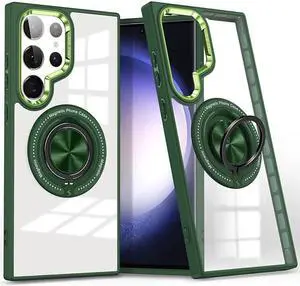 Tough Shield Crystal Case with MagSafe Magnetic Ring Holder for Samsung Galaxy S24 Ultra - Green