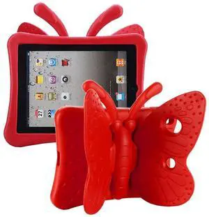 Tading iPad 9th 8th 7th Generation Case Kids Girls, Cute Butterfly Shockproof EVA Foam Super Protection Stand Cover for iPad 2021 2020 2019 10.2" and iPad Air 3 Pro 10.5" - Red