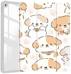 VibrantFruitique Cute Dog Case for iPad Air 13" (M3) 2025/ (M2) 2024 Clear Acrylic Hard Back Hybrid Case,with Pencil Holder Trifold Stand Tablet Cover for Girls Women