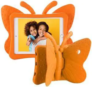 Tading iPad 6th Generation Case for Kids, iPad 9.7 Case, Light Weight Shockproof EVA Foam Protective Tablet Stand Cover Holder for Apple iPad Air/Air 2 iPad 9.7 2017/2018 - Cute Butterfly, Orange