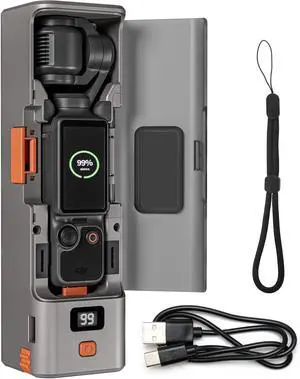 Charging Case/Battery Quick Charger for DJI Osmo Pocket 3,Built in 9000mAh Extra Battery 20W Fast Charging,Digital Display,with Storage Space for Memory Cards and Filters