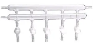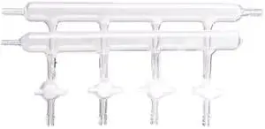 Dual Bank Glass Vacuum Gas Distributor Manifold with PTFE Stopcocks on The Ports (4-Port)