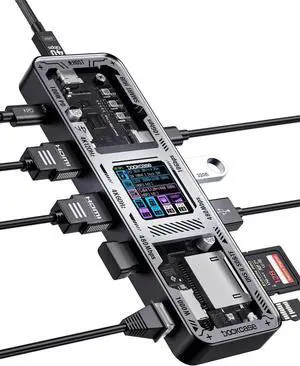 Explorer Edition 10-in-1 USB C Hub, Dual 4K HDMI Docking Station for 2 Monitor, Gigabit Ethernet,1 USB-C and 3 USB-A Ports,100w PD, UHS-II TF/SD Card Reader for MacBook Pro, XPS, and More