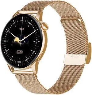 HD1 1.3 Inch AMOLED Screen Smart Watch with NFC Function (Gold Steel+Silicone Strap)