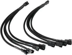 PWM Fan Splitter Cable 4 Pin Black Sleeved Case Fan Splitter Cable 1 to 4 Converter Braided Y Splitter Computer PC Fan Extension Power Cable 105 Inches 2 Pack
