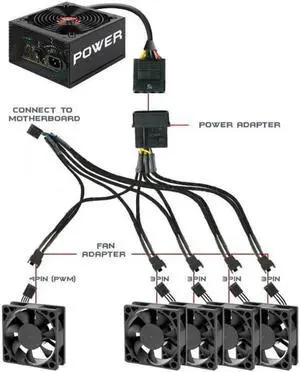1 to 5 Ports 4 pin PWM Fan Hub Splitter - PWM Regulator 12V CPU Cooler / Case / Chasis Cooling Fan Power Cable Adapter Power By PSU Molex 4pin(12V ),40CM Power Cable included