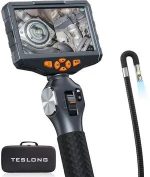 Two-Way Articulating Borescope with Light, Teslong Industrial Endoscope Inspection Camera with Articulated Probe, Flexible Mechanic Fiber Optic Snake Scope Cam for Wall Automotive Engine Inspect-5FT