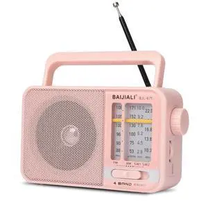 Portable AM/FM Transistor Radio with Loud Speaker, Battery or USB Powered - Compact Emergency Radio for Indoor, Outdoor, Travel & Storms (BJL-671, Pink)