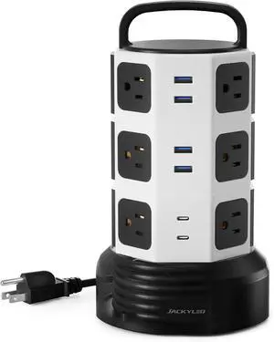 Power Strip Tower Surge Protector, JACKYLED 12 Outlets 6 USB (2 USB C) Charging Station, Extension Cord with Multiple Outlets, 1050J 1625W/13A Outlet Extender 6.5ft Extension Cord for Home Office