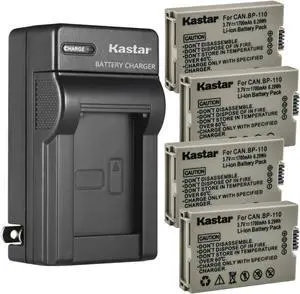 Kastar 4-Pack BP110 Battery and AC Wall Charger Replacement for Canon VIXIA HF R21 HFR21, VIXIA HF R28 HFR28, VIXIA HF R27 HFR27, VIXIA HF R26 HFR26, VIXIA HF R206 HFR206, VIXIA HF R205 HFR205 Camera